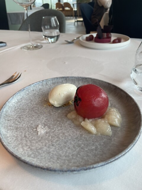コースの終わりにはご飯とトマトの麻婆豆腐が出てきて驚きです。本当に和とフレンチの融合ですね。面白い。しかも美味しい。