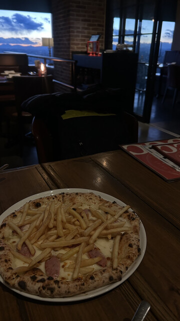 恵比寿なんでエビスビールを注文。同時に前菜盛り合わせ、生ハム、サラダをオーダー。娘はフライドポテト好きですが、何とフライドポテトピザ?!があり早速注文。ここのピザは本格的なピザ窯で作りピザワールドチャンピオン云々とある。期待通り、チーズも味が濃く、ピザ生地丁度良い柔らかさで美味しい。トッピングのポテトは普通でしたが、娘もピザが美味しいと最高に褒めてました。