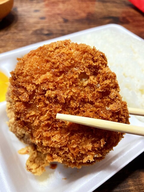 評判のコロッケに醤油味からあげ2個が寄添う