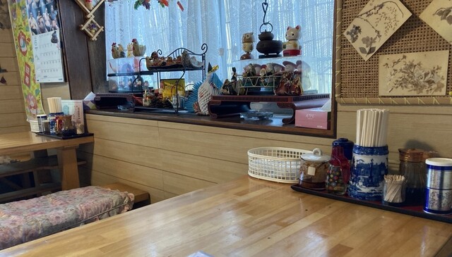 奥の座敷手前のテーブル席でラー半チャーオーダー