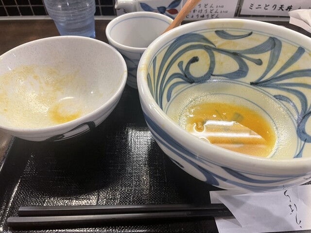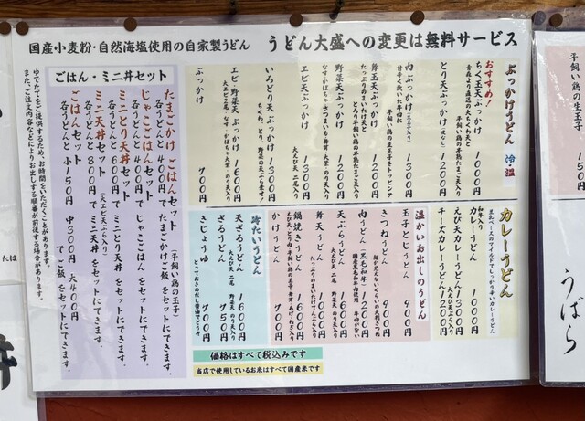 ランチタイムが仕事で遅くなり、腹ペコの体調を整えに「うばら」さんへ直行です。「A定食まだあるかなぁ。」と思いつつ歩いていると店到着。14時頃にもかかわらず4人待ちでした。でもこの時は客回転が早くて、10分程で入店カウンターに着席!今日は外が少し寒いので、「A定食のかけうどん麺大盛りで!」「はい、A定食かけうどん大ですね。」よかった売切れてなかった〜(*^_^*) 。しばらくするとお隣の方の注文の品が来てチラッと見ると、ぶっかけうどんに天ぷらがどどーんと乗ってて美味そう。反対隣りの方はぶっかけうどんにミニ天丼の様、さてはC定食だな。どれも美味そう。次は、コレにしよう、その次は…と考えていると来た来た、待ってました、A定食!。先ずはつゆを一口、あ〜たまらん美味い、暖まる幸せ。ゆっくりいただこうと思いつつパクパクいただいて完食いたしました。大満足!ご馳走様。お勘定を済ませ外に出ると「売り切れ」のメッセージ。間に合ってよかった。厨房のうどん職人さんの動きがリズミカルで笑顔、店員さん達も楽しそうに優しく接してくれてこの店が大好きです。ありがとう、また来ます(^ ^)