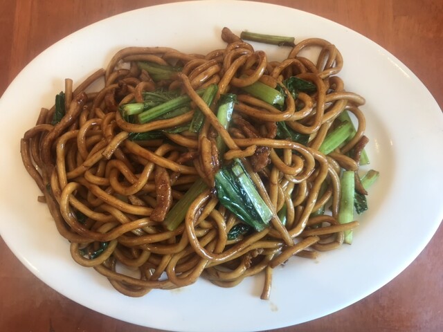 しばらくぶりの萬来亭である。注文はいつもの上海焼きそば、麺がちょっと硬い感じてあるが味は流石に上海仕込み。本場上海とほぼ同じ味である。たまり醤油と砂糖で付けた甘い味は流石である。萬来亭の向かいの製麺所で打った本場の太麺を美味しくいただきました。