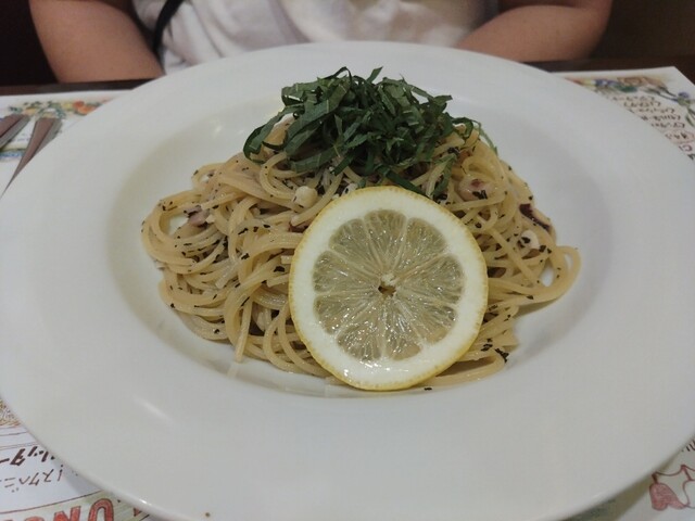 フリットバジリコはにんにくオイルの香りが良くイカの食感とパスタのアルデンテとよく合い美味しかったです