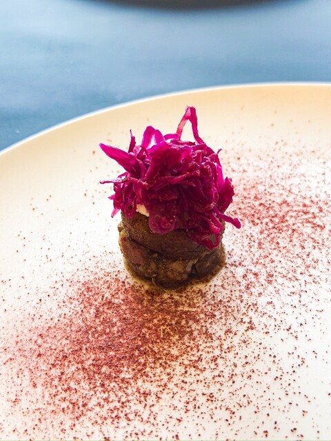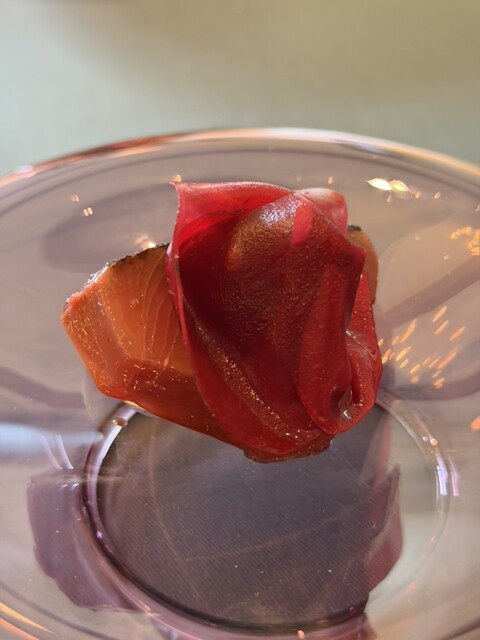 今回は鰹でした!フランボワーズの旨味をしっかり入れており、ビーツのピクルスがなってありました!