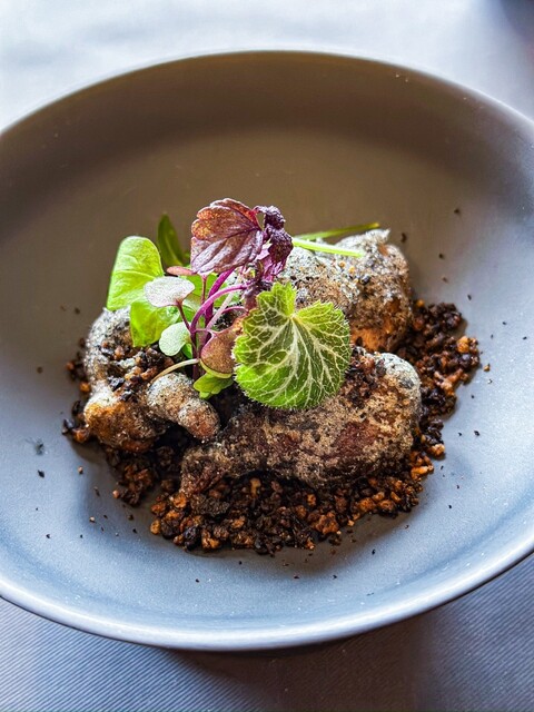 トマトマリネに漬け込み、じっくりと火入れをしてマイナス25℃の冷風に当て最後に高温の薪で焼くというかなりこだわりの一品❗️
