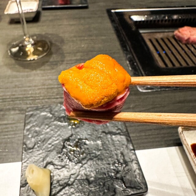 内モモの部位を使っておりとても綺麗な肉寿司です。