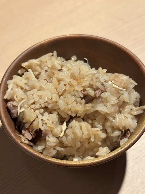 季節の土鍋ご飯は松茸とヒレ肉のご飯です。
