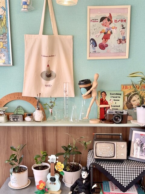 店内はミントグリーンを基調にした雑貨やスヌーピーグッズがたくさんあってとても癒される空間です