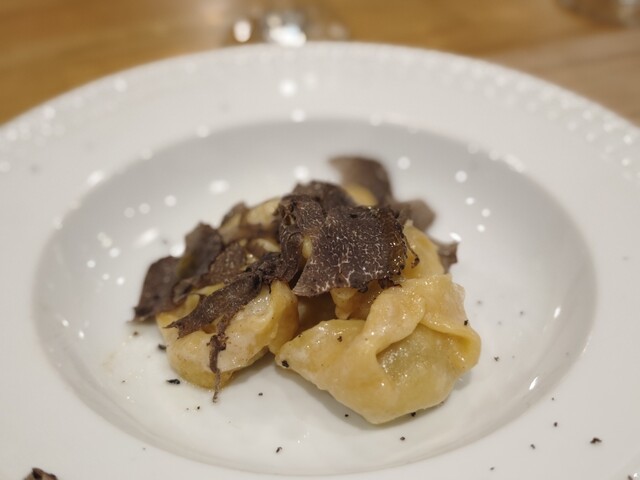 ・梅山豚サルシッチャのパスタ(カペレッティ?)、黒トリュフ