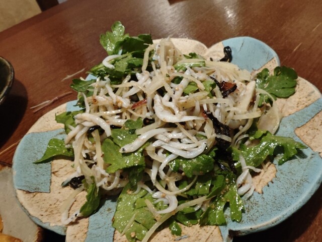 ・ジャガイモとシラスの炒め物 シラス食べたくて注文。一匹一匹大きくてしっかり味がした。味付けは和風のペペロンチーノ?お酒が進む味。