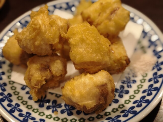 低温で蒸してから揚げており、ホクホク感と甘みが閉じ込められている