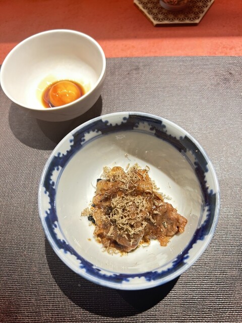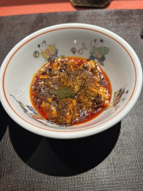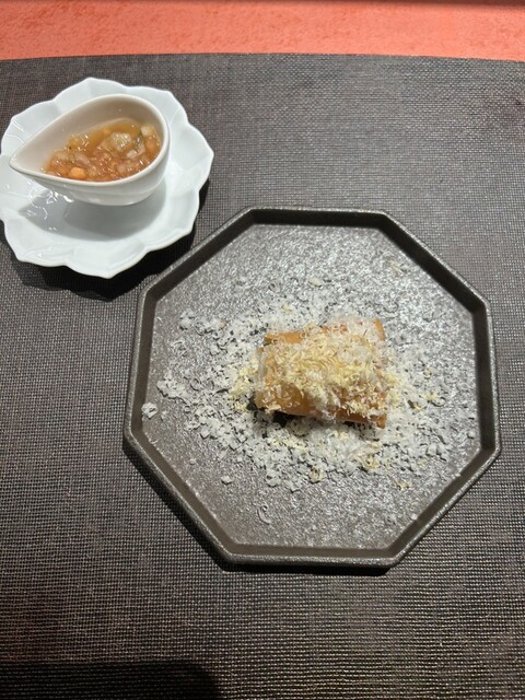 一皿目のタコ、山椒がピリッと効いたソースと、吸盤のコリコリした食感が相まって、とても美味しかったです。