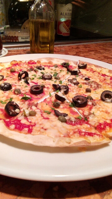 最後に薄くてクリスピーなピザを頂きましたよ。