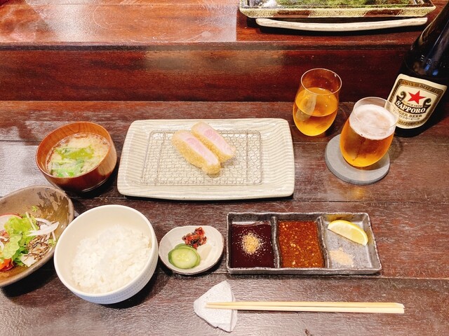 内装はcomocchiさんの時のままですね、リブロースが売り切れの為ロース・ヒレのセットを注文しました。なんとランチはワンドリンクサービスです…太っ腹な!迷わず赤星をいただきました。