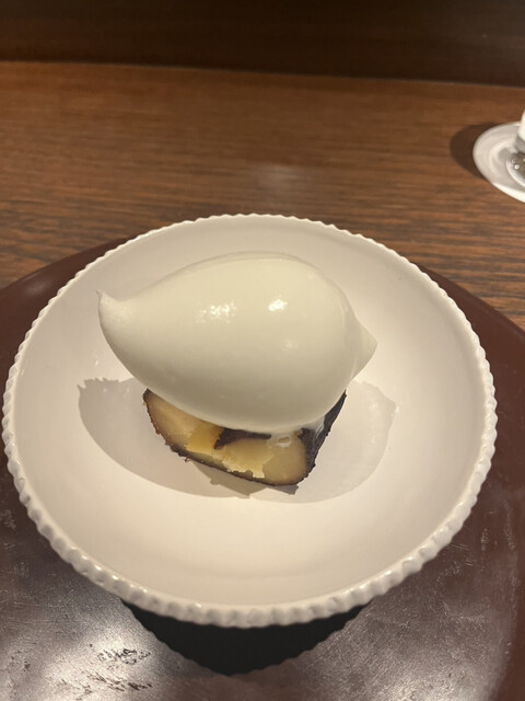 山羊のミルクのアイスクリーム オリーブオイルを垂らして