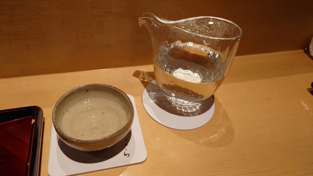 それと、しのはらさんでも去年から日本酒をぐい呑みというか、天酒堂さんの酒碗で飲ませるようになったけど、今回は江戸切子かどちらにしますか?ってことで、最初の半合を両方で飲ませてもらったけど、こうして飲み比べてみるとけっこう違うもんなんだねぇ。酒碗の方がマイルドで、江戸切子の方は、きっと瓶から注いだままの味なんだろうけど、シャープな味わいに感じた。面白いねえ。