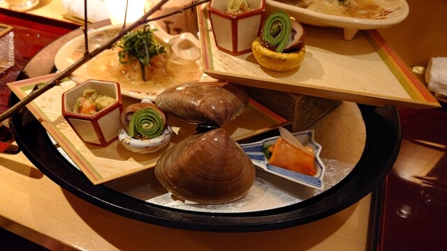 席に着くといきなり目の前に渡り蟹の甲羅がズラリ並んでいて、バエルなぁーと写真をパチリw 今回もどれも美味しかったけど、特に甘鯛が椀物なのに香ばしさが残って美味し。それと子持ちの落ち鮎の唐揚げも最高に旨かった。八寸の品々もどれも美味しかったし、前回も戴いてるフォアグラ最中に焼きすっぽん、飛騨牛のシャトーブリアンも、再度その旨さに驚き、デザートまですべて堪能。お腹いっぱい。大満足。