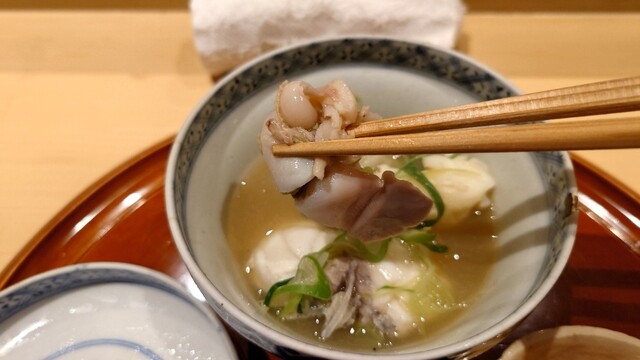 今回はハトシや冬瓜の摺り流しのお椀とか肝醤油を塗って焼いた鼈とか、鮎もサワークリームをディップして戴いたり、デザートは大豆珈琲の葛餅だったり、新鮮なメニューが多くて楽しませていただいたし、毎度のことながら勉強になりました。湯桶なんてのも知らなかったですしね。