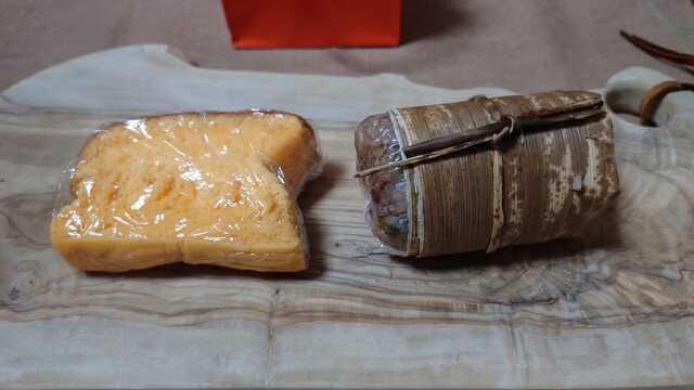 お土産 薪焼きの蛍烏賊に桜海老のご飯と台湾カステラ
