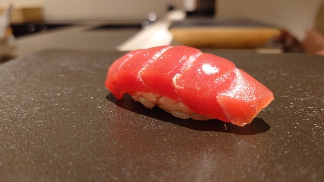 ・赤身 ヅケ やあ、いい香りだ。シャリにピッタリ