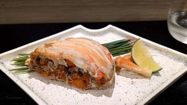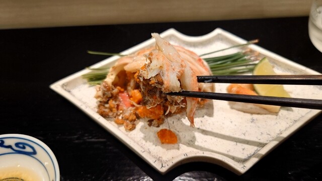 噴火湾の毛蟹(味噌和えと)土佐酢ジュレで