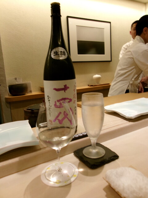 ということで、既にカクテルを飲んで来たんで、最初から日本酒をお願いしつつ、握りのみのおまかせコースのスタートです…と思ったら、先付は出るようです。