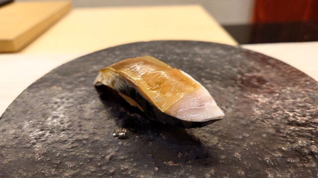 ・鯖 メニュー外。三重県安乗のゴマサバ。こちらは〆鯖ですね。いつものとおり白板昆布を乗せて旨ッ!