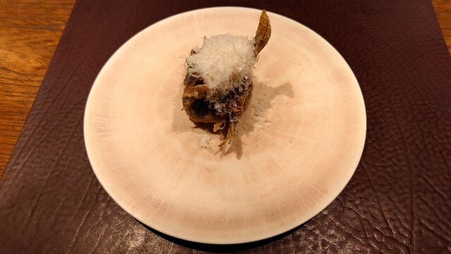 ・稚鮎のフリット ケソ・マンチェゴを削って