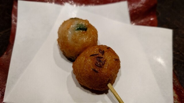・揚げ立ての薩摩揚げ(上が野菜、下がクミンとチーズ)