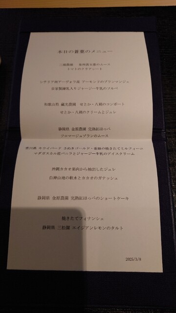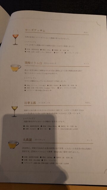 そう。こちらのおまかせコースは、ノンアルコールペアリング付きとなっていて、お皿に合わせたお茶が用意されます。さて、この日の蒼菓のメニューは、