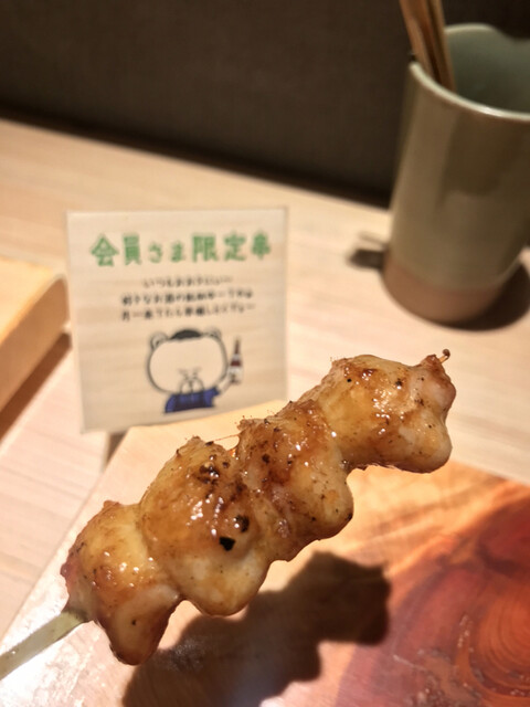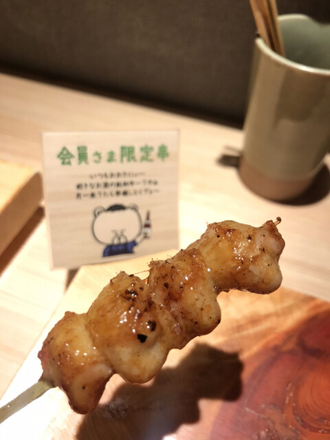 会員限定の鳥刺しと祇園白川コースを選択。焼き鳥は相変わらずの上品な火入でとても美味しい。