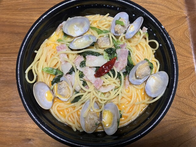 パスタは乾麺から+110円で生パスタに変更できますがかなり昔に変更したことがありますが自分的にはこのメニューでは乾麺の方が合ってると思います!カロリーを気にしつつもスープまでしっかり完食!ご馳走様でした!