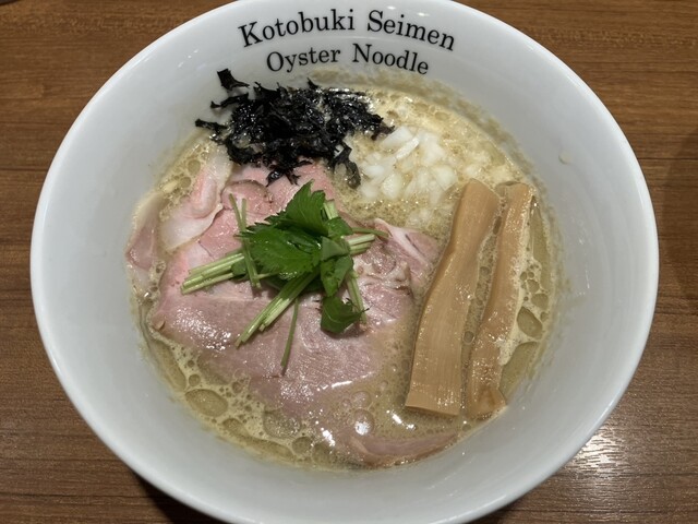 次に濃厚牡蠣そばが着膳しこちらも見た目も美味しそうなラーメンです
