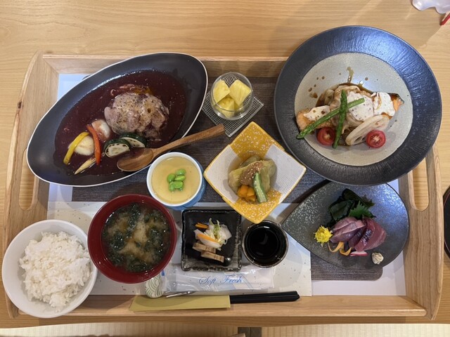 夕膳はお部屋での提供。大きめの御膳に数々の料理。お造り、魚料理、肉料理、汁椀、香の物、小鉢、デザート。バランスの良いメニューに見た目も美しい。決して高級素材を使ってるわけでは無いが、何を食べても美味しい。かなり工夫された食材の組み合わせが特に印象的で、メインの鮭の下に敷かれているのがポテトであるとか。