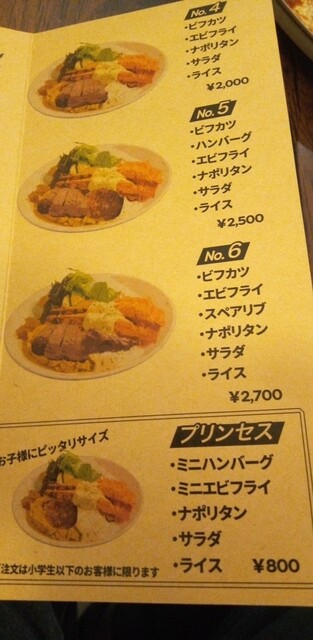ハンバーグ・エビフライ・ナポリタン・ライス