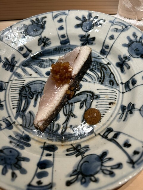 17時スタート。第一発目はトラフグ白子の茶碗蒸し、木の実とワカメが入っており、木の実がアクセントになっている。今治大島の鯛の刺身、エビを沢山食べているらしい。塩で頂いたが、甘味があって美味い。先程の鯛の出汁。何も入れず、そのまま自然の味。地元穴子1.5キロの炙り、梅ジェル、軽く炙っただけで香り良い。地元鰆3キロを炭で軽く炙り玉ねぎポン酢で頂く、脂が乗って、玉ねぎポン酢が爽やかな味。鮑を蒸したものを鮑の肝ソースで頂く、余りの美味さに肝ソースを完食してしまう勢いであったが、これを酢飯で頂くので、セーブした。朝取り貝の盛合わせ、調味料無し出汁で食べるたが、出汁が美味い。平貝、トリ貝、サザエ。おおすじハタ。宇和島のカワハギ、切身とシャリの間に肝が入っており、こくがあって美味い。愛南町のブリ。愛南町のアオリイカは包丁で細かく切身を入れて柔らかくしてくれた。あまみがあった。能登で取れた大トロ二枚重ね、本当にとろける。しかし写真撮る忘れた!ワタリガニ、内子たっぷりで、濃厚な味。今治の赤貝、数日寝かし水分を飛ばしているらしい。大振りで、コリコリしていた。徳島でとれた赤ムツをちょっと炙ってワサビたっぷりで頂いた。程良い脂が乗っていた。愛南町の真鯵、でかい!地元で取れた車海老、この時期漁獲量は少なく、貴重だそうだ。朝氷〆、半生で50度をキープ。甘くて美味しい。八幡浜で取れた紫雲丹。この時期ならではとの事で甘くて美味い。穴子、笹の葉での蒸し焼き。煮切りが濃くがあり美味い。どれもこれも美味く、満足行く食事であった。ごちそうさまでした。