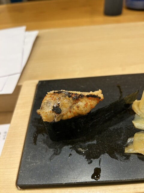 マナガツオ、今治産赤貝、北海道産水タコ、メカジキ。マナガツオ、メカジキは1週間熟成させているらしく、魚の旨味を引き出しており、美味い。特にメカジキのトロは食った事がなく感動した。
