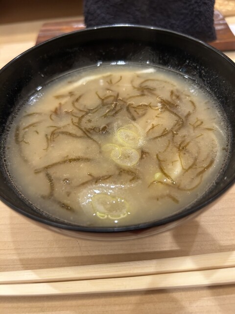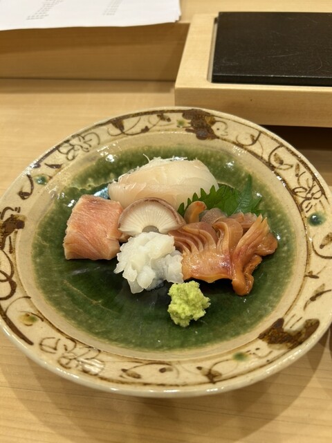 寿司も美味いが、つまみも美味い。絶対に食べて欲しいのが、タコ柔か煮と鮑肝和え。これ、コースだと一番高いのしか着いて無い。鮑肝和えは、柔かさと味が何とも言えない一品。付き出し、中でもチーズ豆腐がうまい。このお店は、どんな味がするんだろうとワクワクさせてくれる一品が多い。次にさわらと明太子の茶碗蒸し。これもびっくりする様な味。刺身は北海道のブリ、松山あこう、しらさえび、水だこ。焼き物は宇和海の甘鯛松笠焼、その他握り10品は、長崎対馬アナゴ、厚岸の煮牡蠣、ばらはた、メバル、タイラガイ、〆さば、黒ムツ炙り、かんぴょう巻き、車海老おどりと全てが二重丸。鹿島の煮蛤は大ぶりで、最高。メバルは煮付けはよく食べたが、生は初めて。大将曰く煮ても美味しい魚は生で食べても美味いとの事、最後は、デザートで、抹茶とスダチミルクで終了。流石なだ万で修行した板前さん。今日も大満足なディナーでした。ごちそうさまでした。