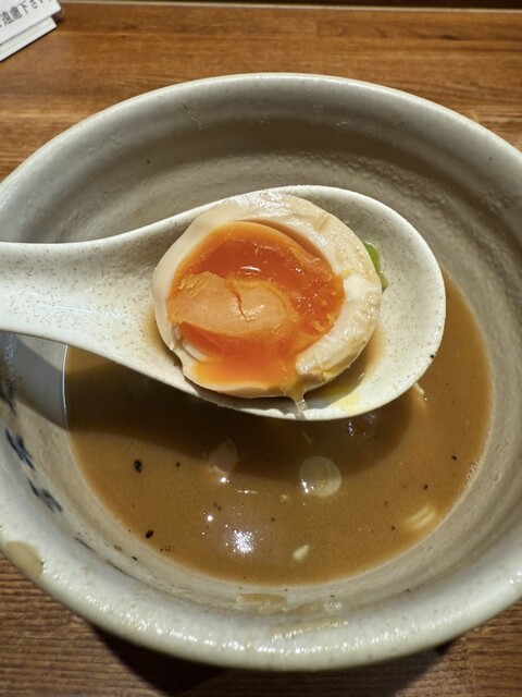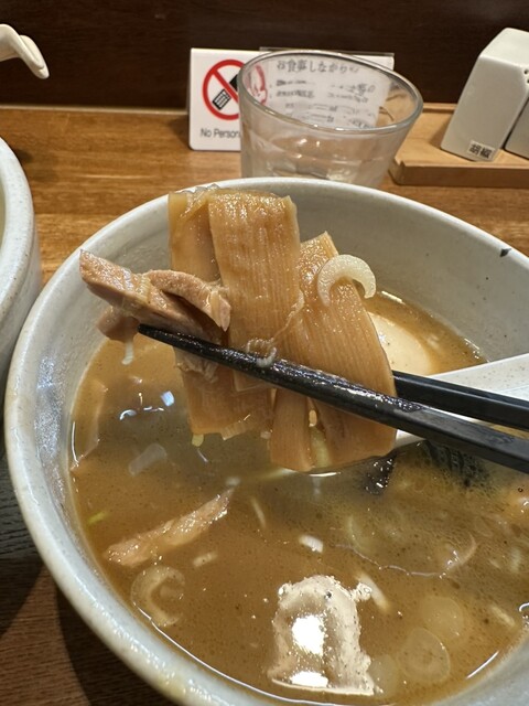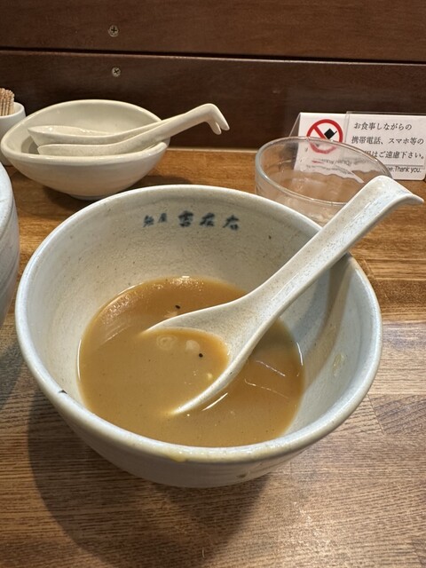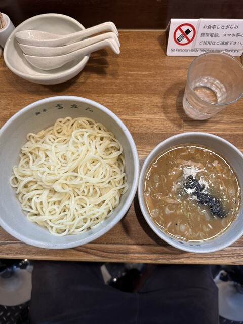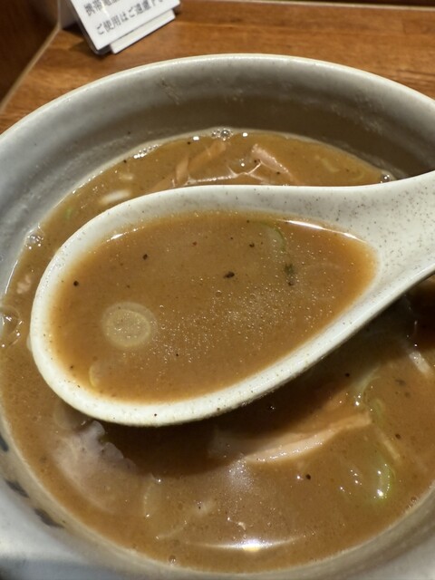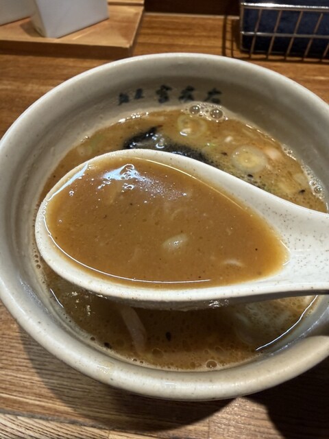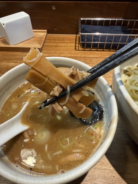次につけ汁につけていただくと、豚骨と魚介の見事な調和のされたWスープはやはり唯一無二!
