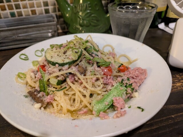 具たっぷりのパスタ。モチモチ麺で美味しかったわぁ。