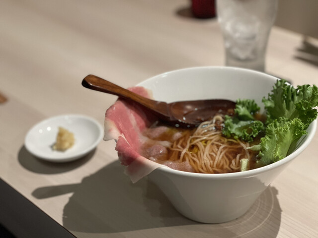着座して、土日祝ランチの①近江牛そば②コールドビーフ丼をそれぞれ...