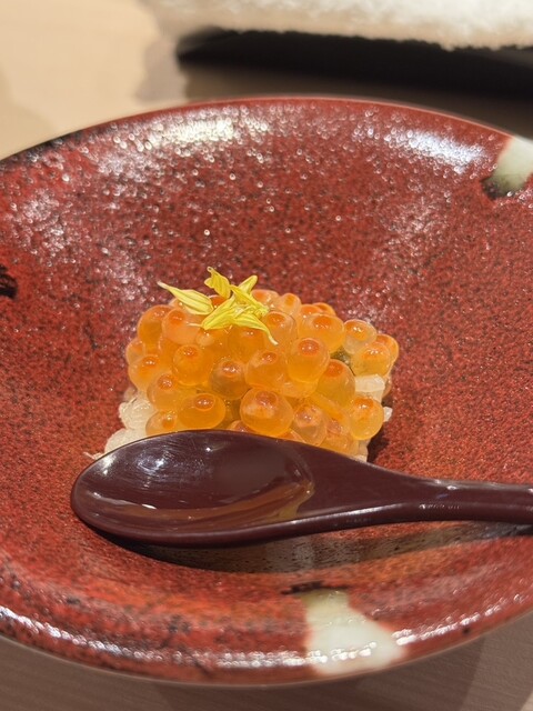 イカの淡さの上にウニの甘さがのっていて、一貫の中でコントラストが完成している。