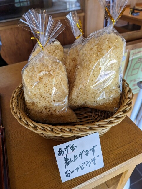 レジ前にあった天かすの無料サービスも頂戴して、大満足の私達♡