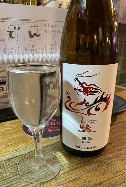 そんなに広くない店なのに、天板焼と炉端焼?の対応も揃え、お客さんは多め。カウンターにいた事もあり、店員さんといろいろ話す事に。日本酒もこだわったものを揃えていて良い。メニューも気になるものが多く、一人用に調整しても頂けた。寒い日だったので目の前のおでんを注文、汁も美味しい。辛子に加えて柚子胡椒も付いている。