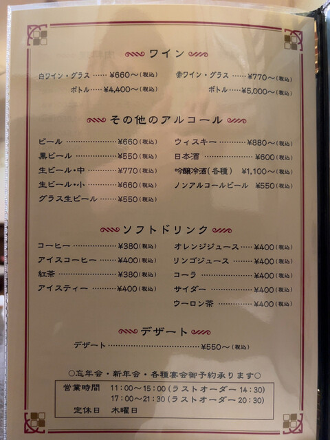 ドリンクメニュー。