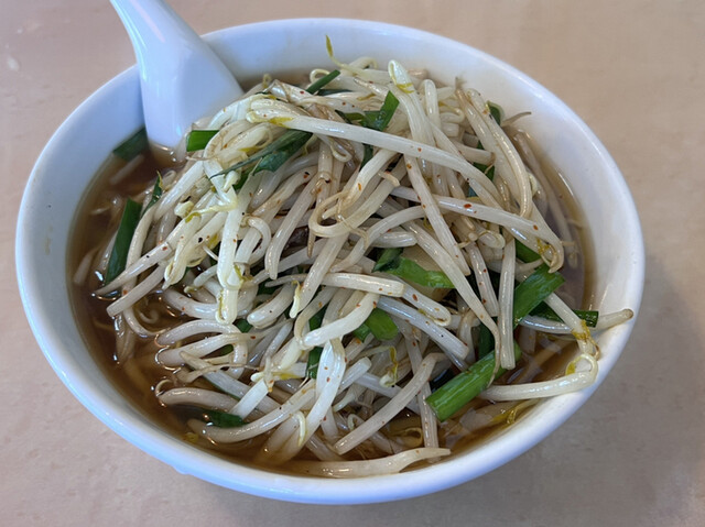 もやしとにらのビリビリ辛炒めがたっぷり載っています。