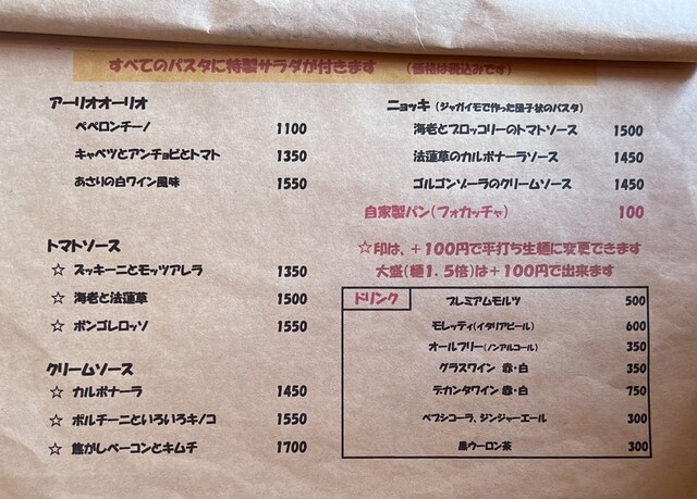 自家製パン(フォカッチャ)100円、以上合計2950円です。