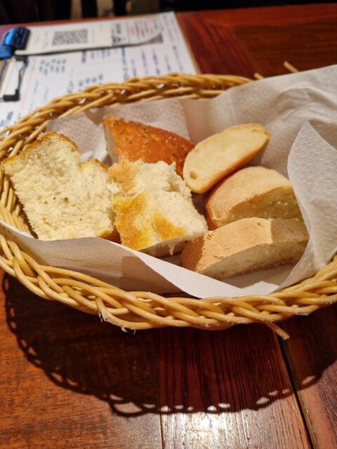 直ぐにパンが来たので、オリーブオイルを付けて食べました。