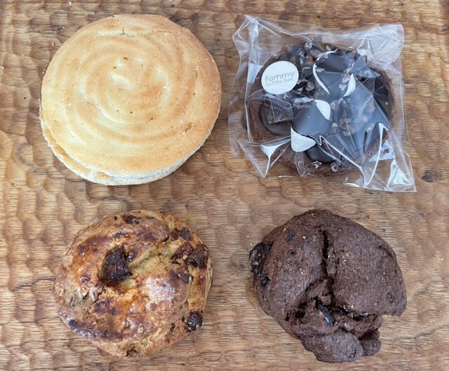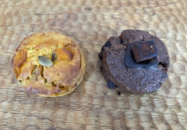 購入したのはスコーン2種とマロンパイ。スコーンはごまファッジとカカオニブのスコーンにしましたがどちらも美味しい。