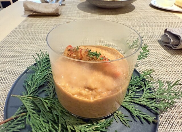 メインは友人はお魚のポワレ。私は手長海老だったでしょうか。アメリケーヌソースのリゾットです。器の中にスモークが入っていて開けるとフワッと香りが…ら、美味しかったですが、もうちょっと塩味欲しかったです。